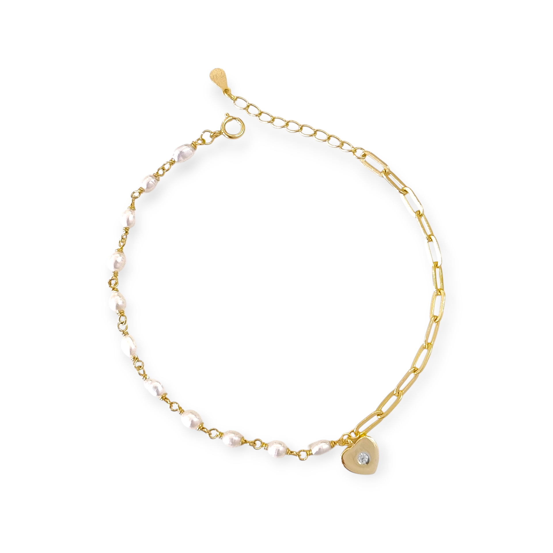 Bransoletka pozłacana z perłami i cyrkonią - serce