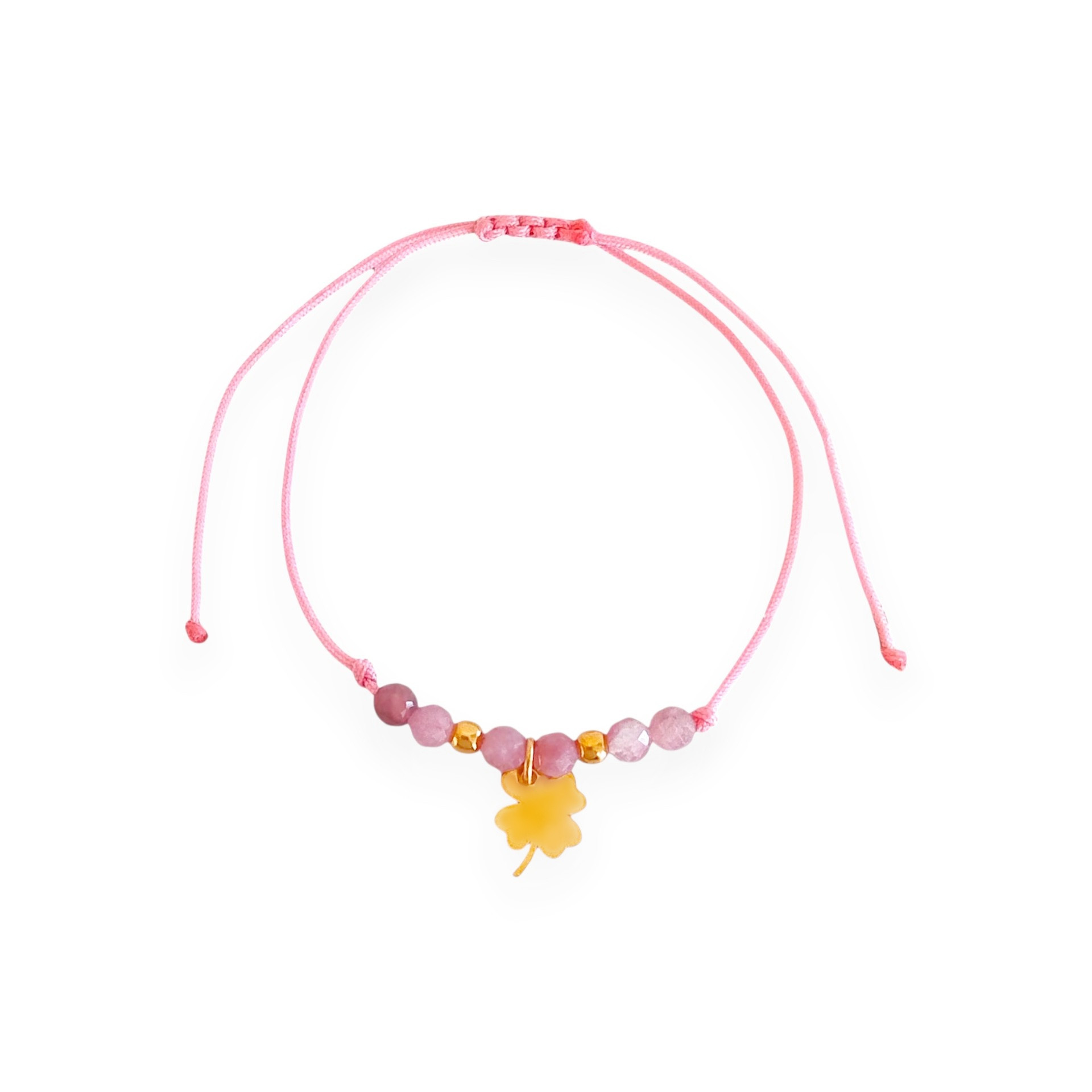 Bransoletka pozłacana z turmalinami - koniczynka, sznurek