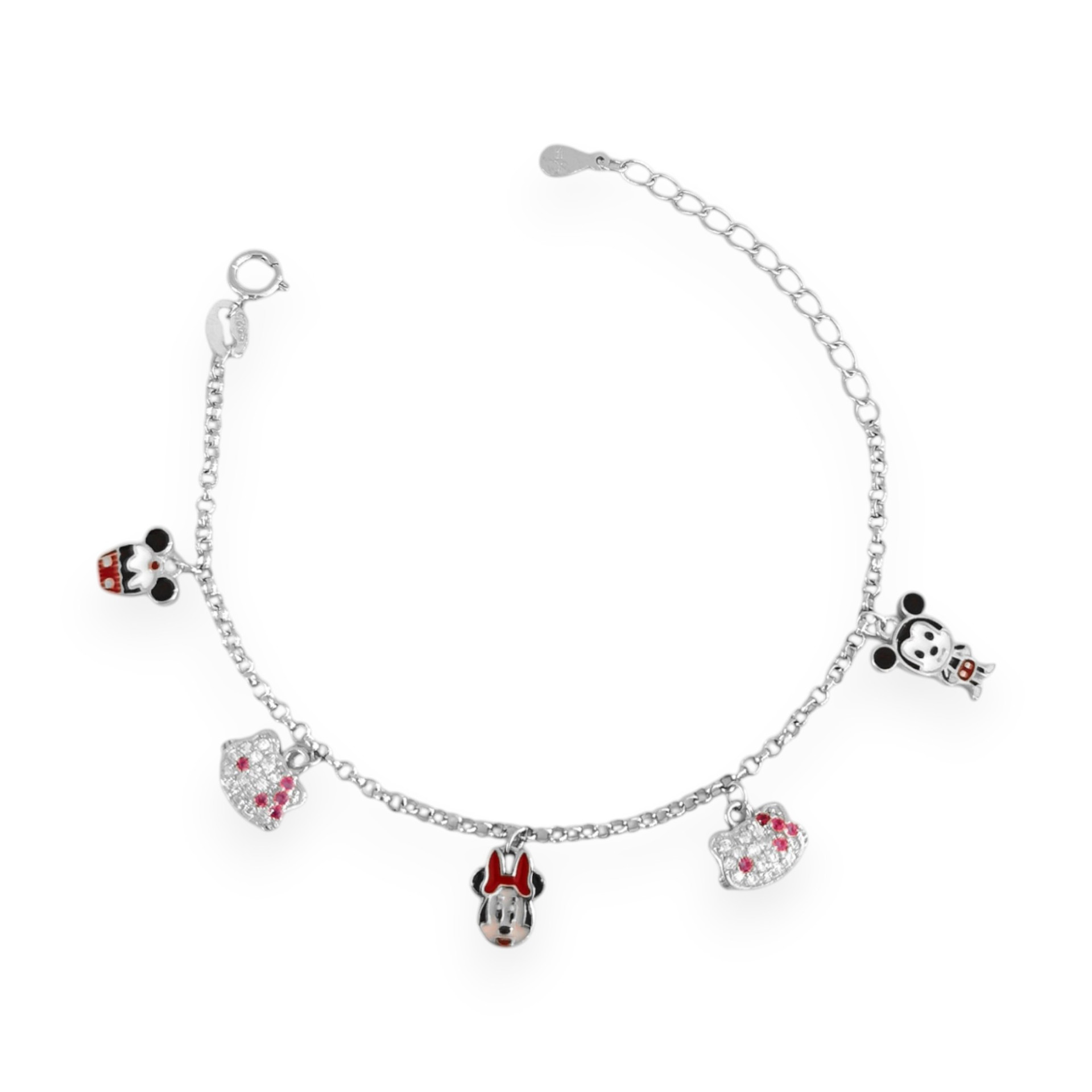 Bransoletka srebrna z cyrkoniami i emalią - myszka miki