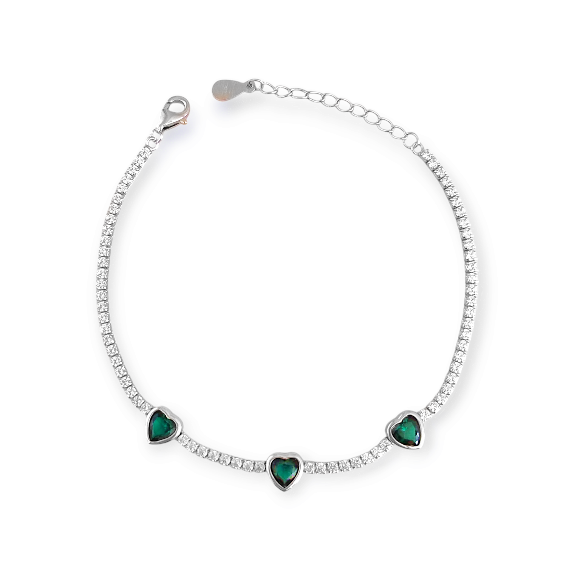 Bransoletka srebrna z cyrkoniami - serca