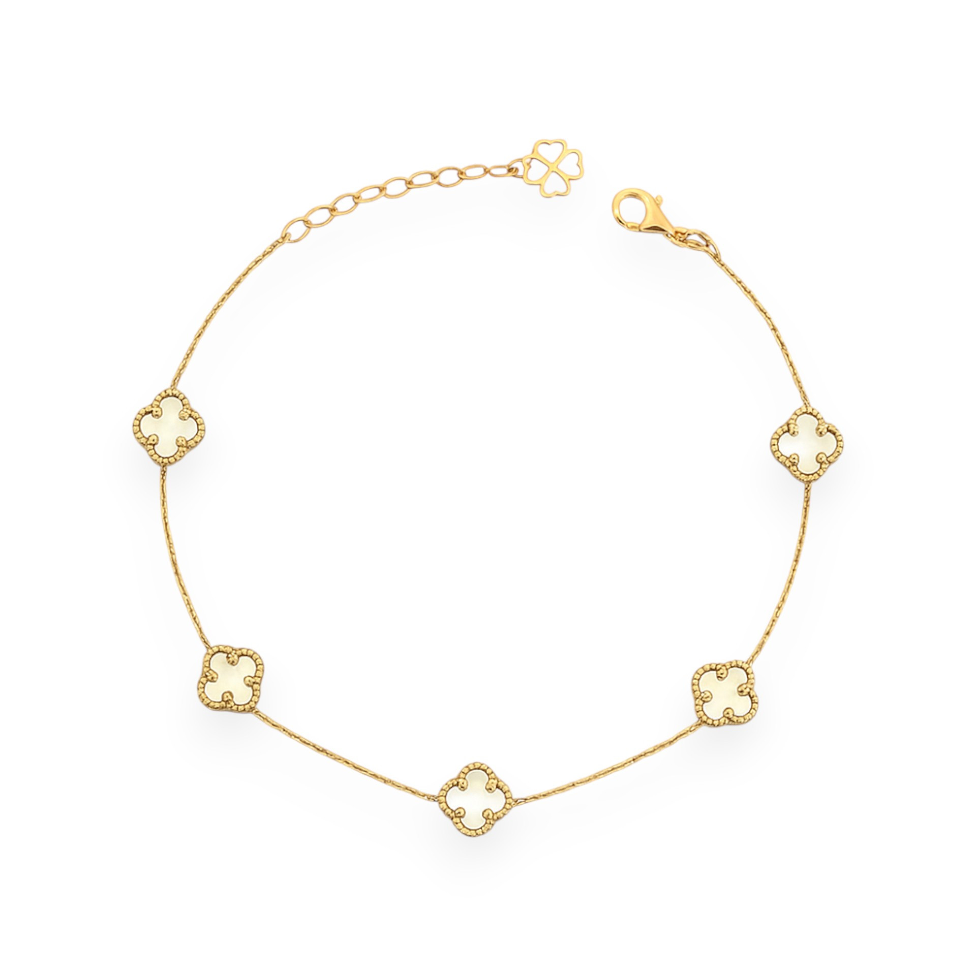 Bransoletka złota z masą perłową - koniczynki NEW
