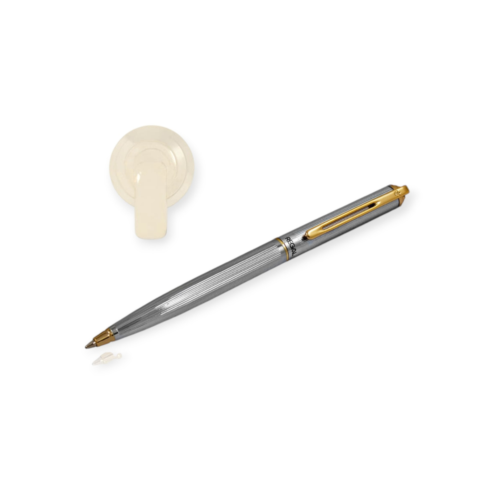 Elegancki długopis REGAL "Thames" w kolorze srebrnym ze złotymi okuciami. Długopis zapakowany w ozdobne pudełko. Eleganckie wzornictwo, doskonałe materiały, wzorowe wykonanie wyróżniają markę Regal.