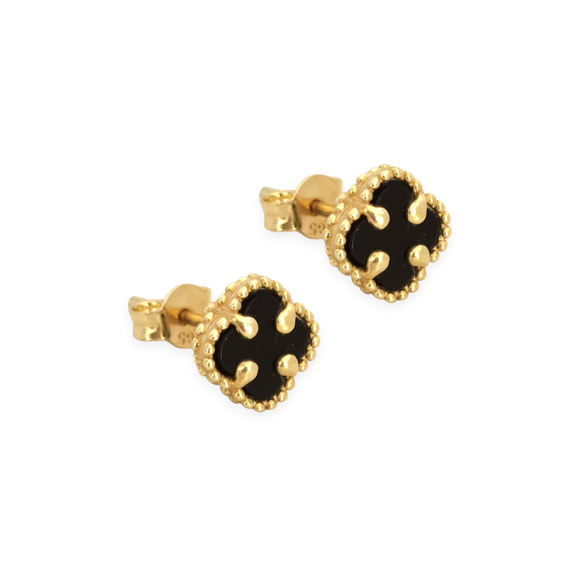 Kolczyki złote z onyksem - koniczynki NEW