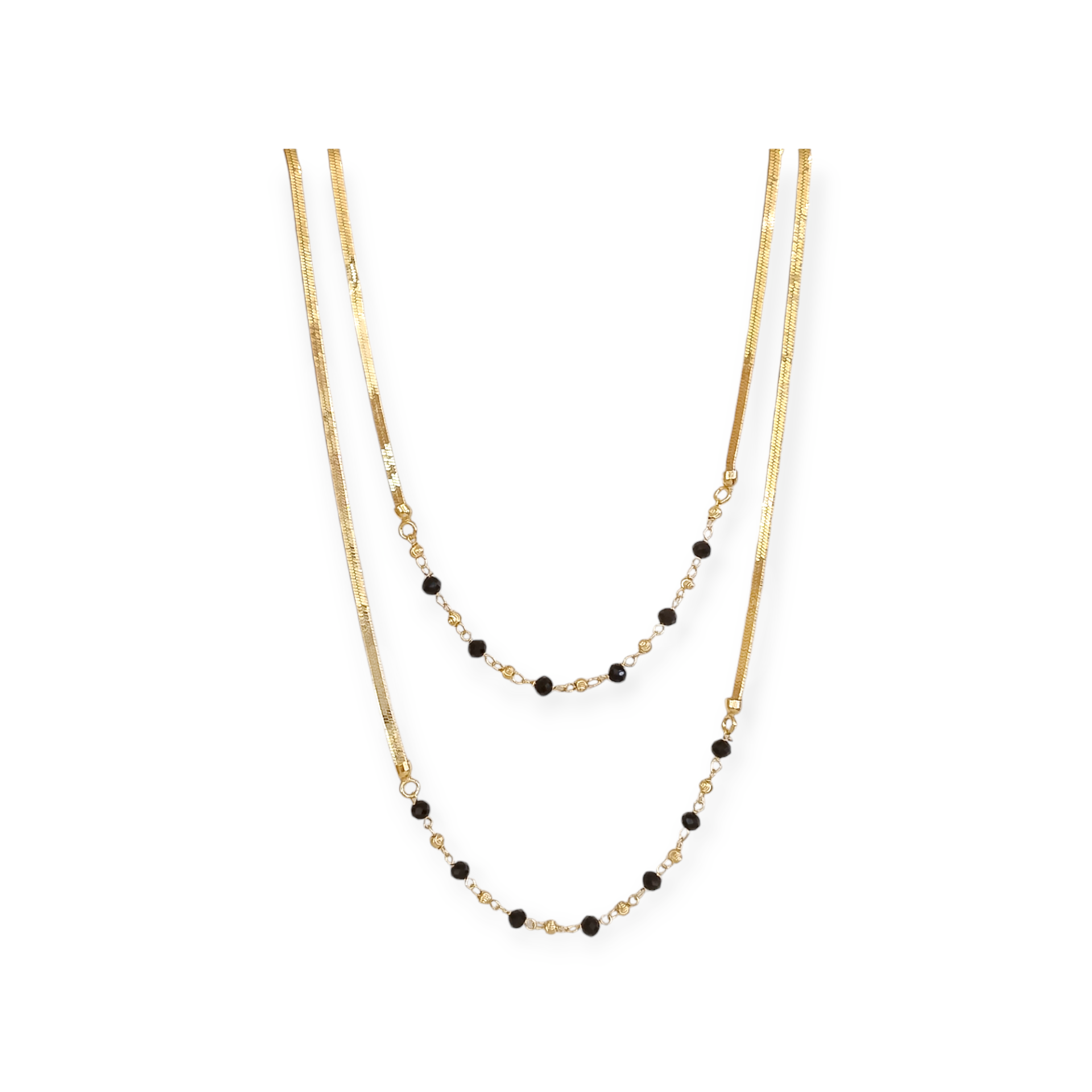 Naszyjnik podwójny pozłacany - taśma, żmijka, kamienie szklane