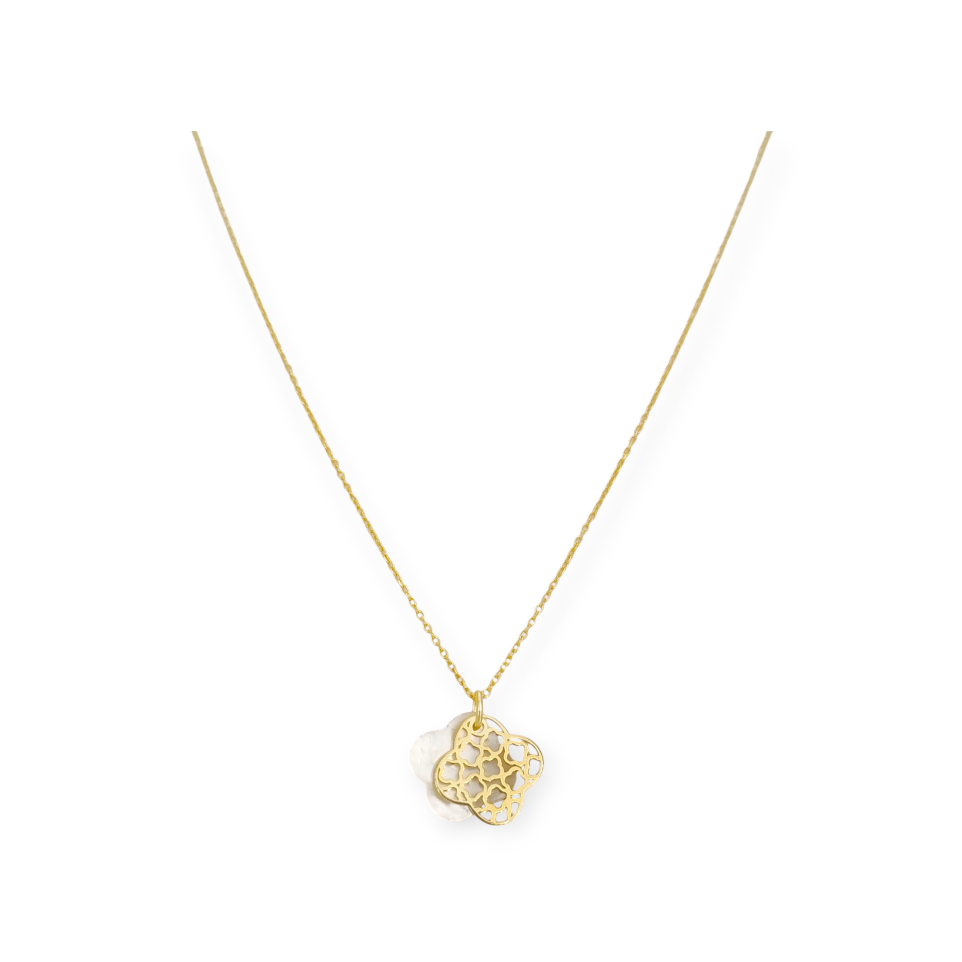 Naszyjnik pozłacany z masą perłową - koniczynka NEW