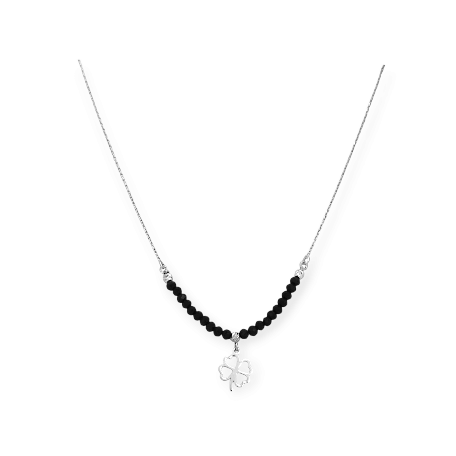 Naszyjnik srebrny z kamieniami szklanymi - koniczynka