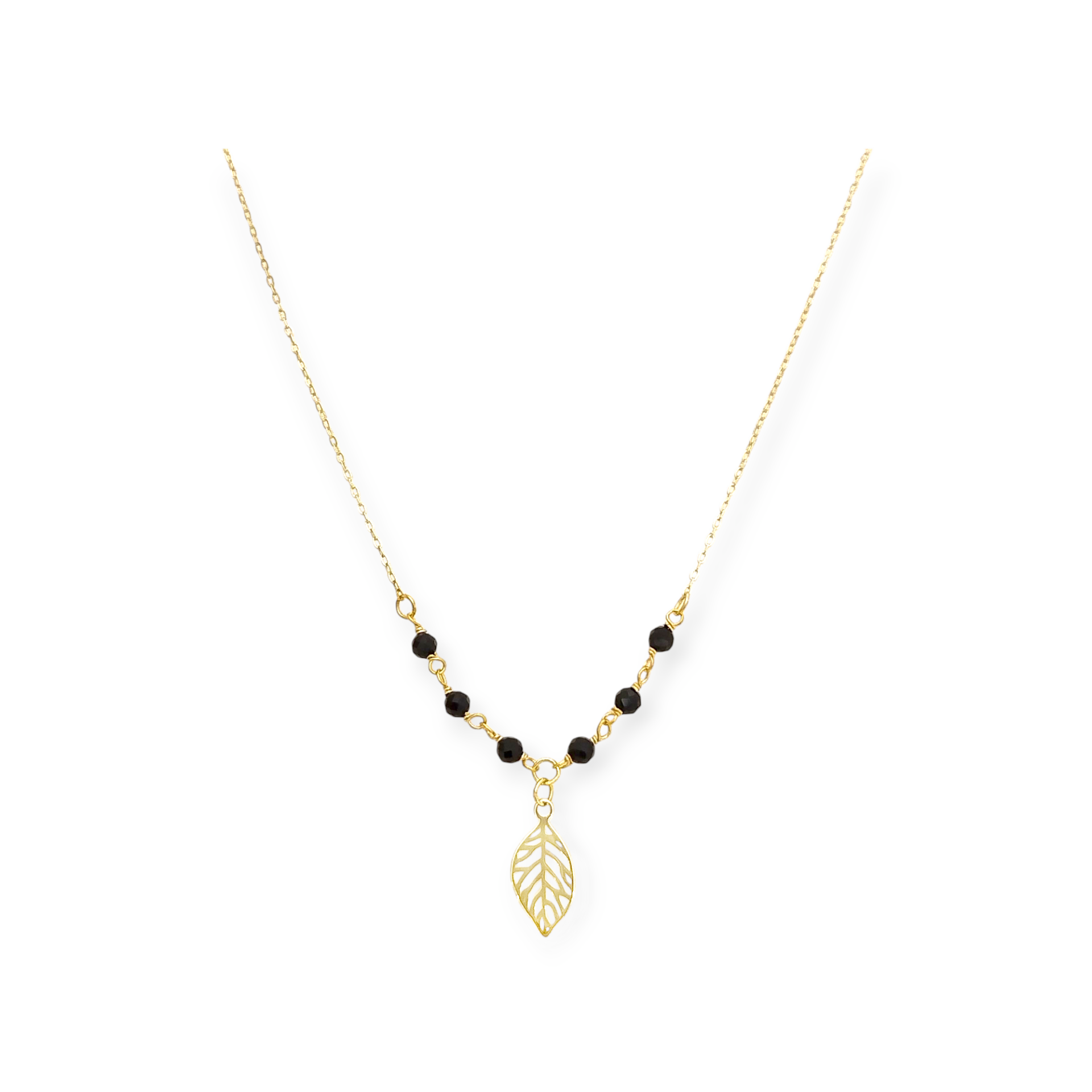 Naszyjnik złoty z kamieniami szklanymi - liść