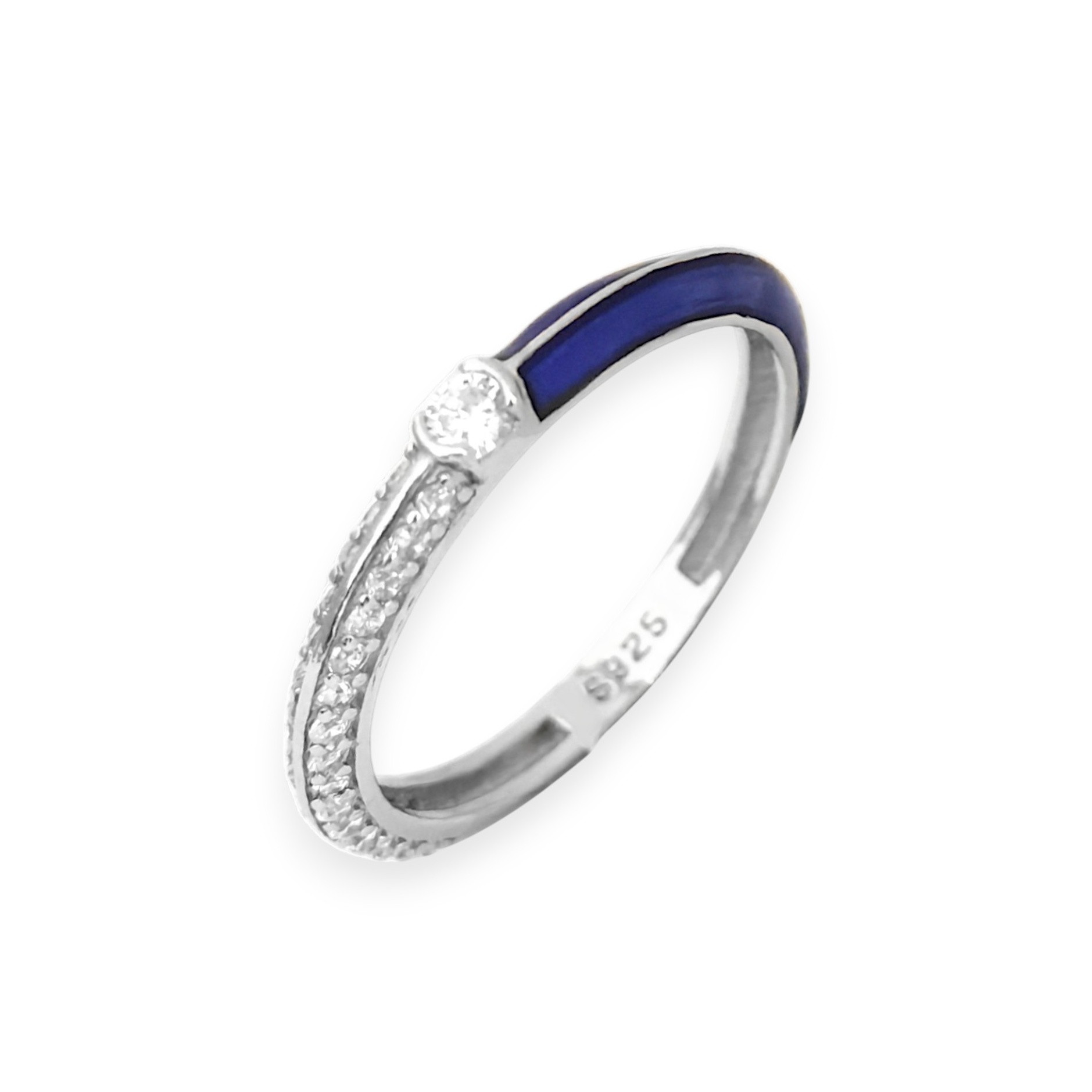 Pierścionek srebrny z cyrkoniami i emalią