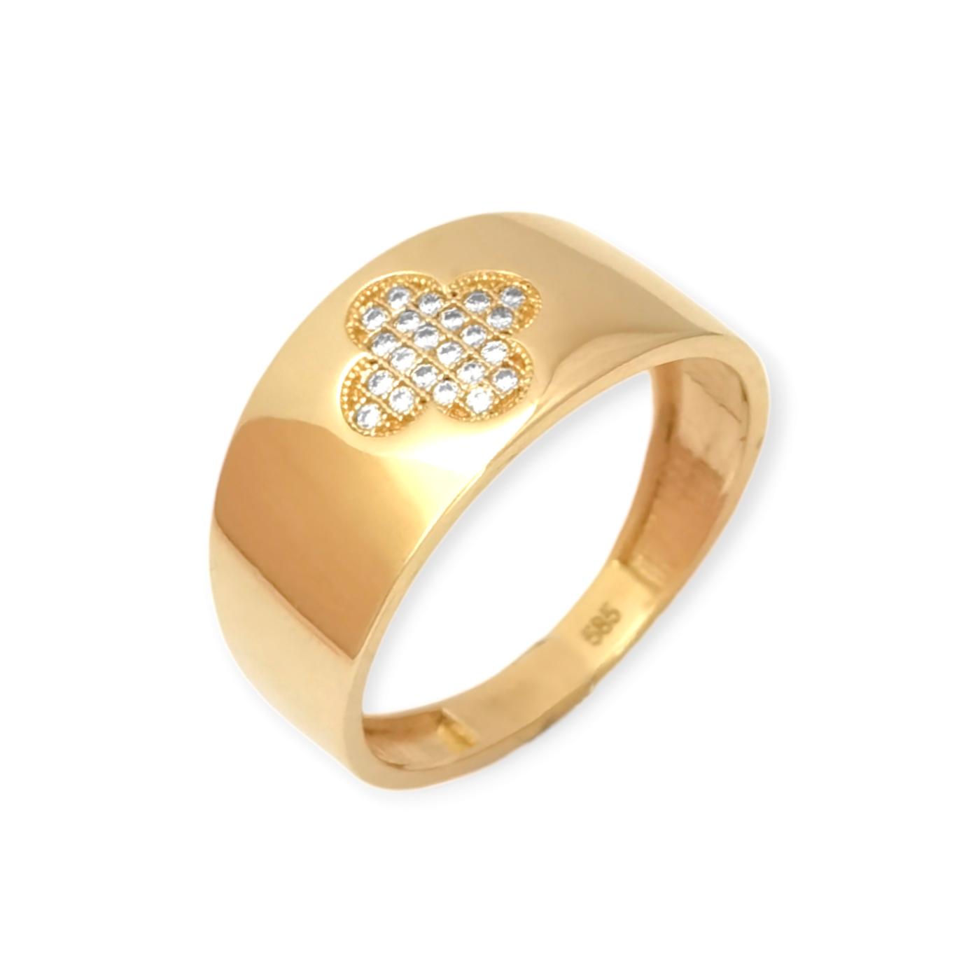 Pierścionek złoty z cyrkoniami - koniczynka NEW