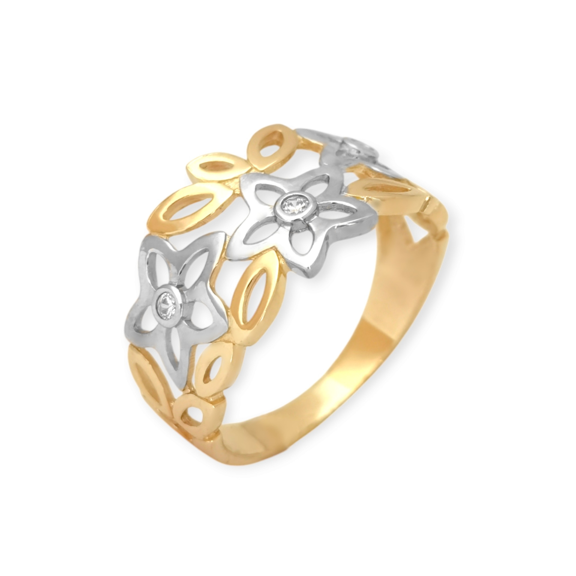 Pierścionek złoty z cyrkoniami - kwiatki