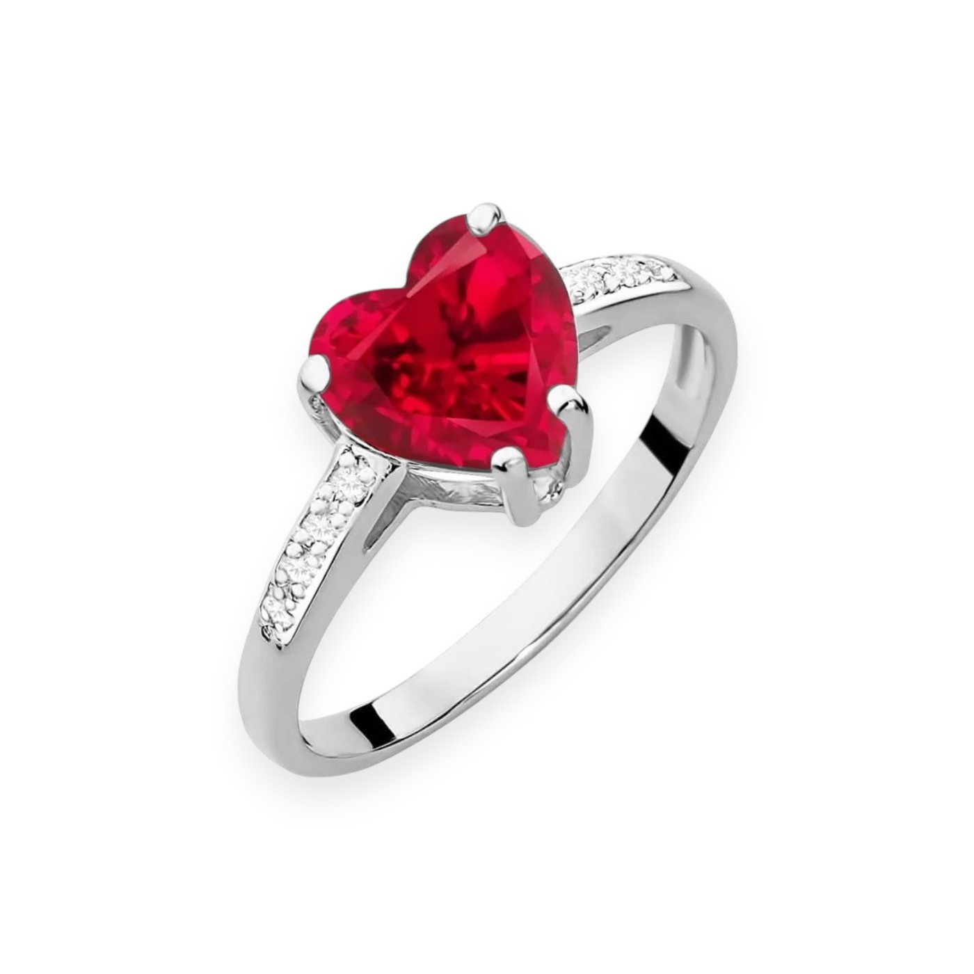 Pierścionek złoty z diamentami i rubinem - serce
