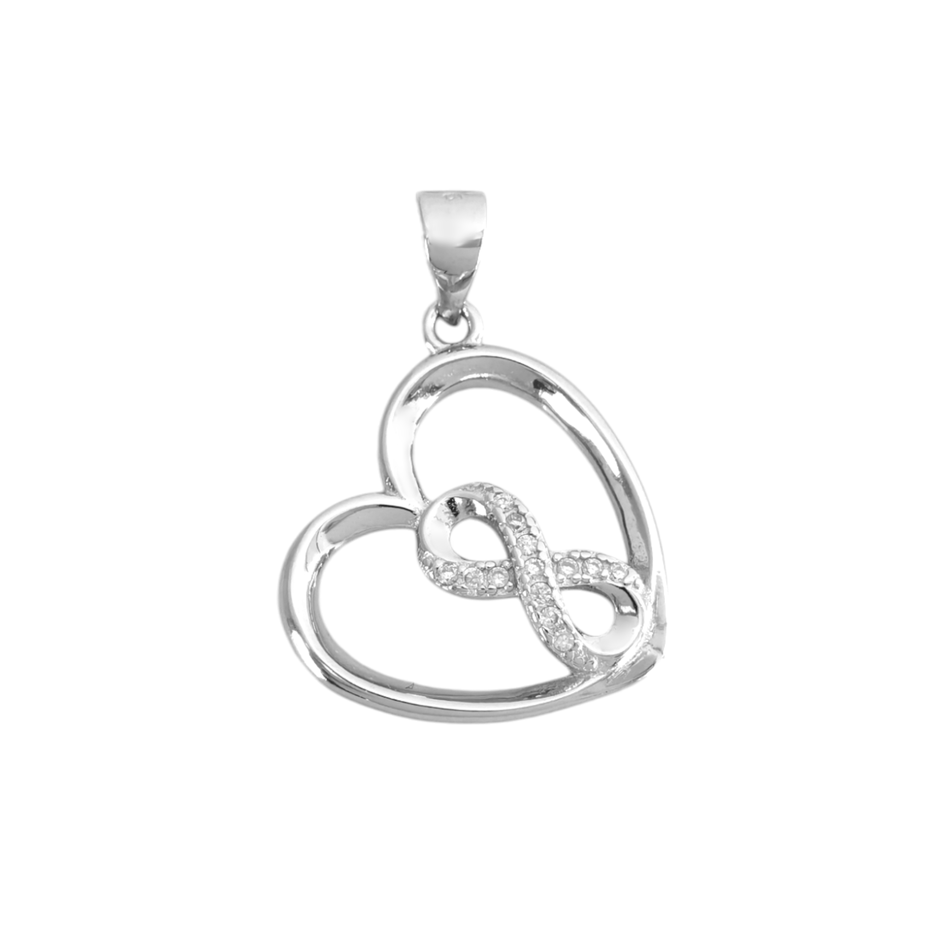 Zawieszka srebrna z cyrkoniami - serce, nieskończoność