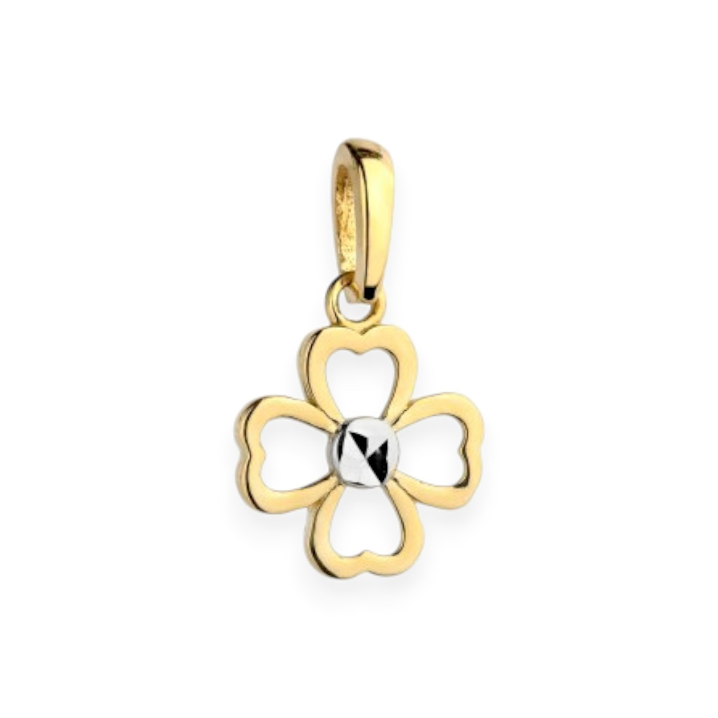 Zawieszka złota koniczynka dwukolorowa