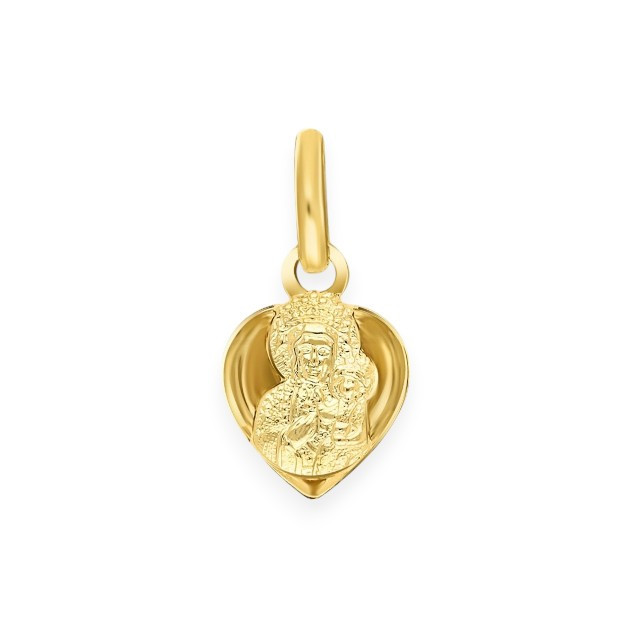 Zawieszka złota - medalik Matka Boska Częstochowska, serce