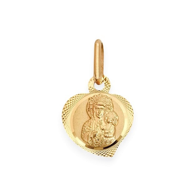 Zawieszka złota - medalik Matka Boska Częstochowska, serce