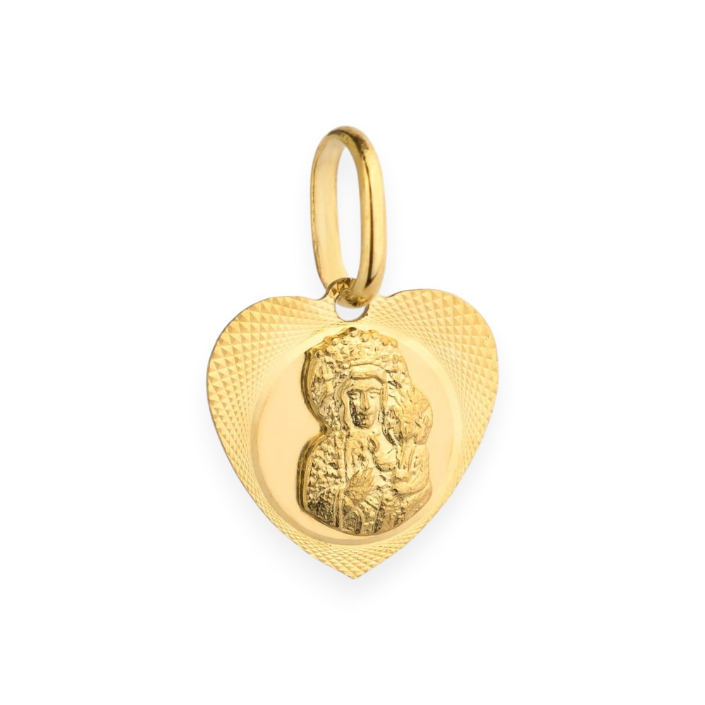 Zawieszka złota - medalik Matka Boska Częstochowska, serce