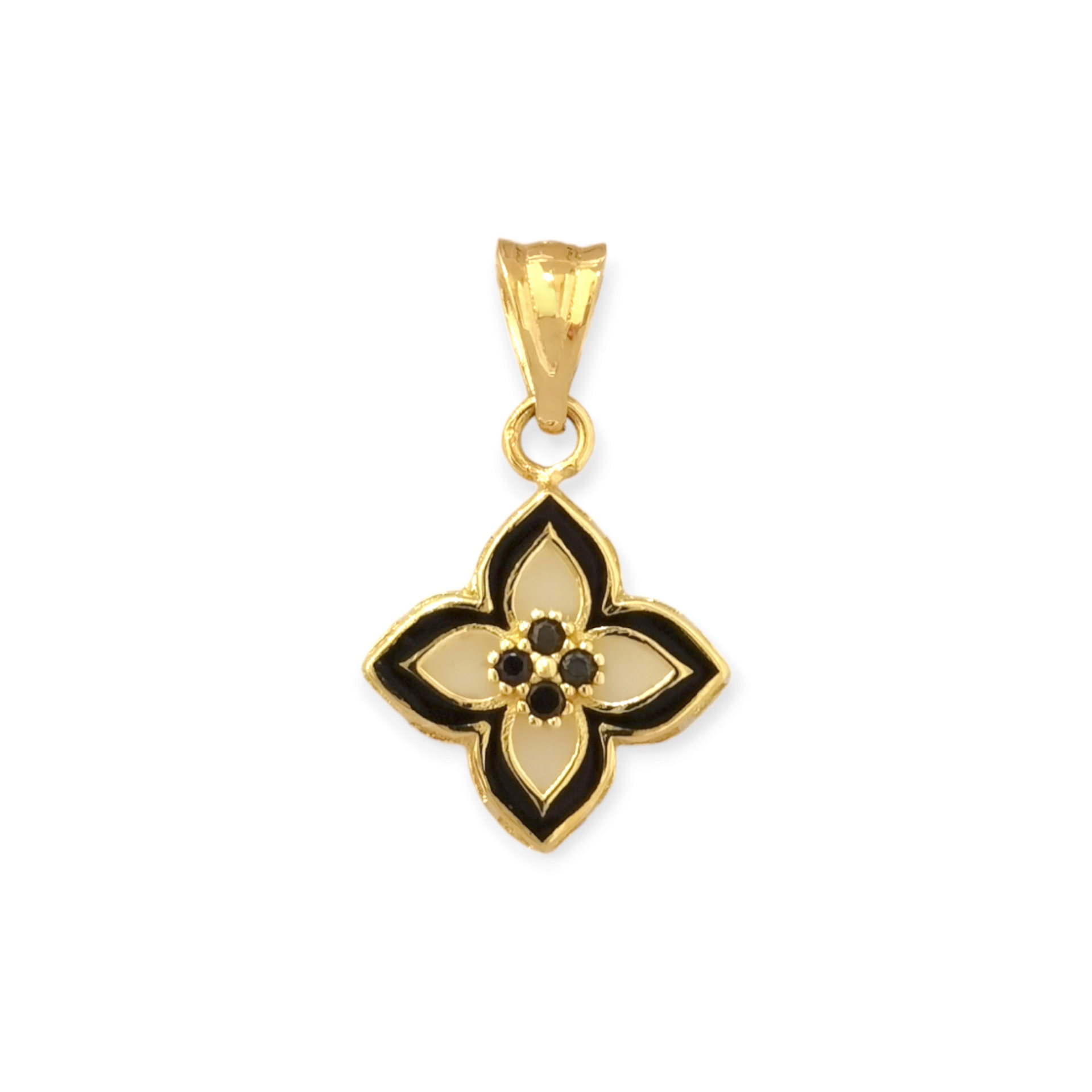 Zawieszka złota z cyrkoniami i emalią - kwiatek NEW