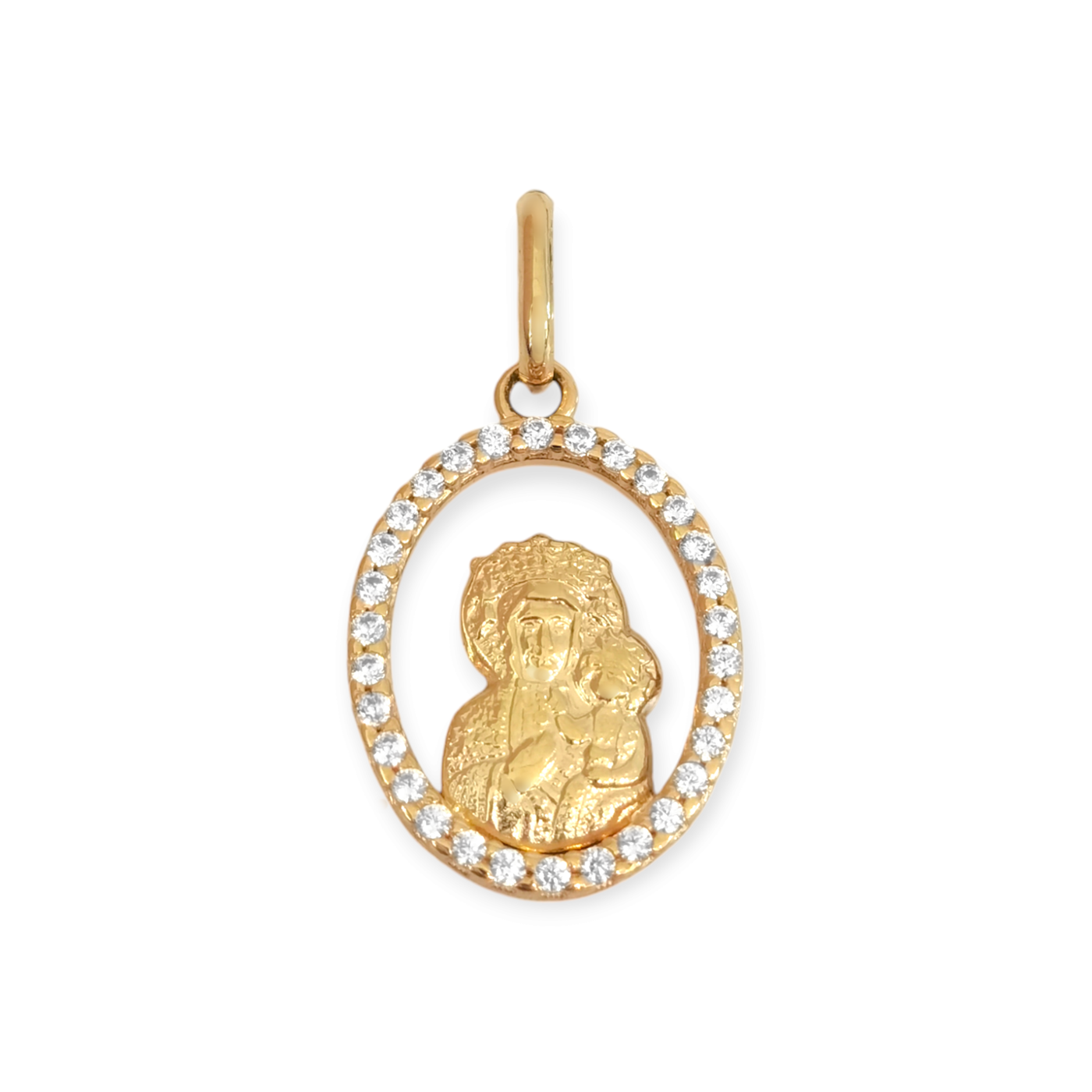 Zawieszka złota z cyrkoniami - medalik Matka Boska Częstochowska