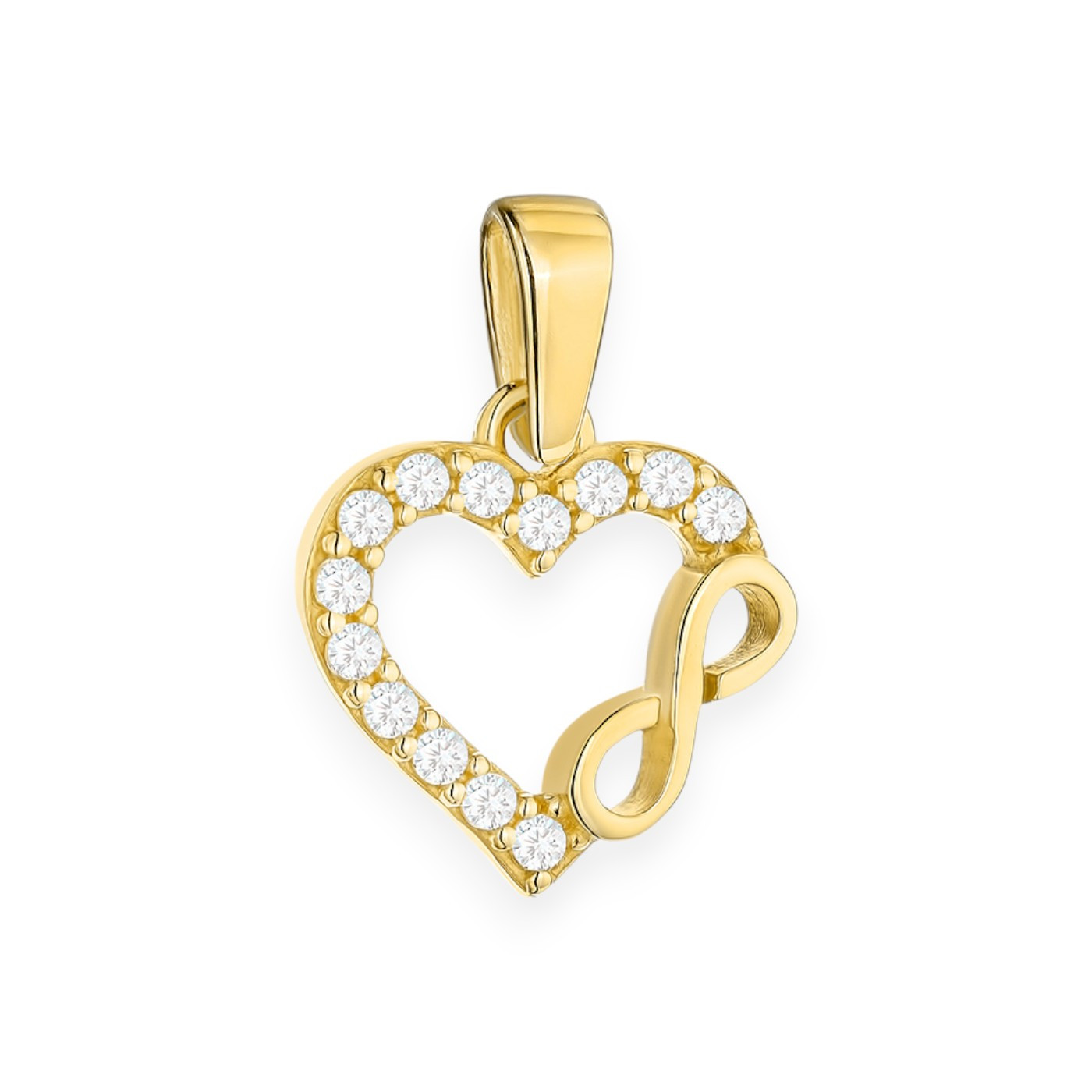 Zawieszka złota z cyrkoniami - serce, nieskończoność NEW
